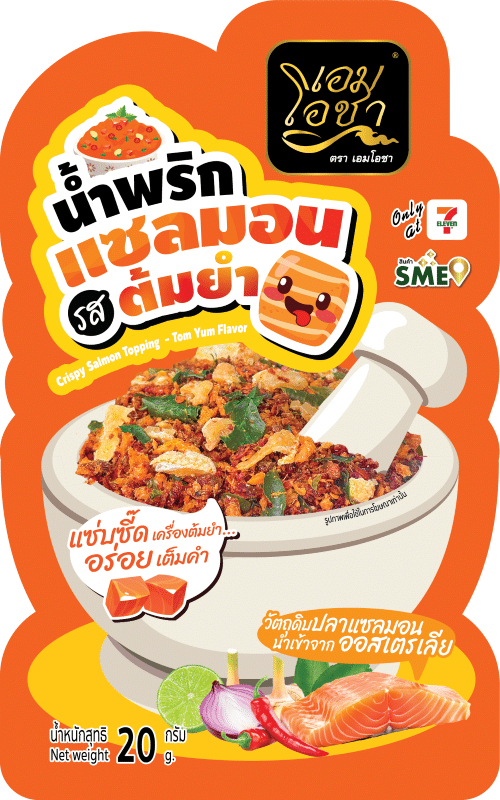 น้ำพริกปลาแซลมอนรสต้มยำ อร่อยจัดจ้านด้วยกลิ่นหอมของสมุนไพรไทยอย่างตะไคร้ ใบมะกรูด และพริกแห้ง ผสานกับเนื้อและหนังปลาแซลมอนกรอบ เคี้ยวเพลิน รสเปรี้ยว เผ็ด เค็ม ลงตัวแบบต้มยำแท้ๆ แค่โรยบนข้าวสวย หรือทานคู่กับอาหารจานโปรด ก็อร่อยง่ายในทุกมื้อ เป็นอีกหนึ่งเมนูพร้อมรับประทานที่ทั้งสะดวกและอร่อย