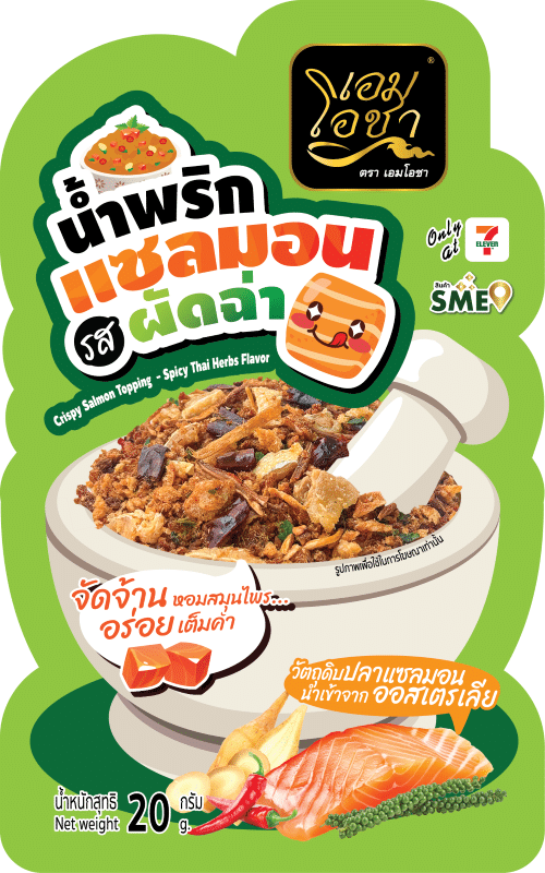 น้ำพริกปลาแซลมอนรสผัดฉ่า จัดจ้าน หอมเครื่องสมุนไพรไทยอย่างพริกสด กระชายอ่อน และใบมะกรูด ผสานกับเนื้อและหนังปลาแซลมอนกรอบ เคี้ยวเพลิน ได้รสเผ็ดร้อนแบบผัดฉ่าสไตล์ไทยแท้ อร่อยง่ายในทุกมื้อ แค่โรยบนข้าวสวยร้อนๆ หรือทานคู่กับเมนูจานโปรด เป็นอีกหนึ่งเมนูพร้อมรับประทานที่ทั้งสะดวกและอร่อย